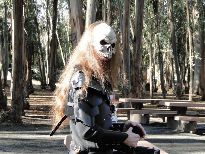 around 2001, I started to come up with a more fleshed out story of the character of Sav involving massive wars, a full crew of allies and all kinds of other stuff. Never did write it down since there were massive gaps in the story. At this time, what the final form of him started to take shape and has stayed pretty much the same ever since. He became a warrior in black, plate armor, long, red blood soaked hair, and wore the skull of a warlord he defeated. I'll admit a chunk of his appearance was heavily influenced by one of my favorite movie villains, General Kael of Willow.